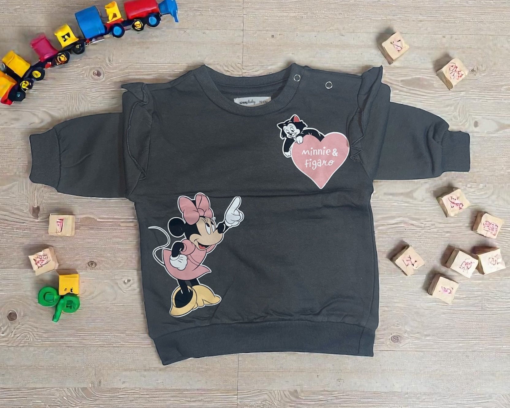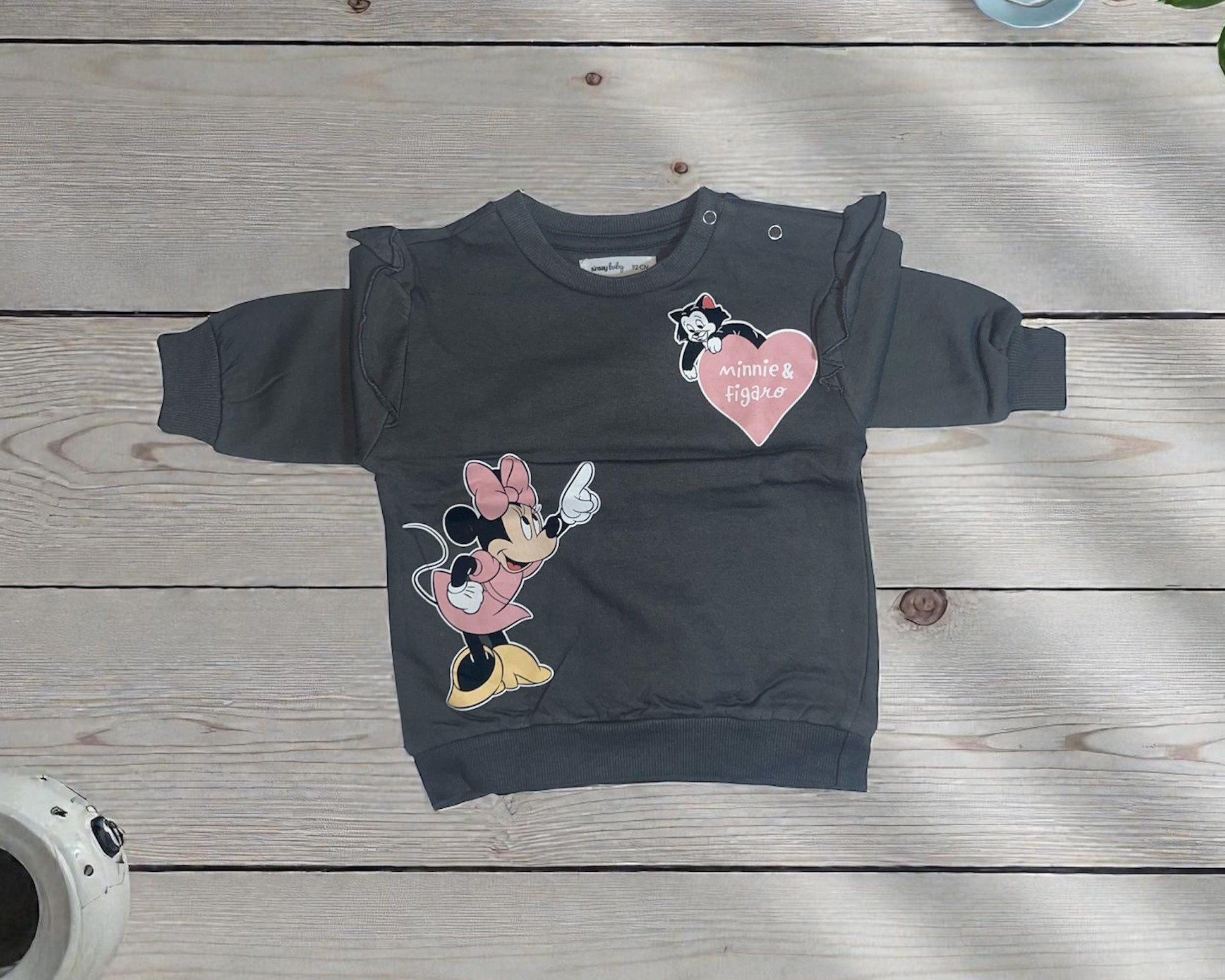 Keep little ones warm and happy in this full-sleeved loopknit top with a soft fleece lining. Featuring a cute Minnie print, it’s gentle on the skin and perfect for cozy days, playtime, or bedtime during cooler weather.