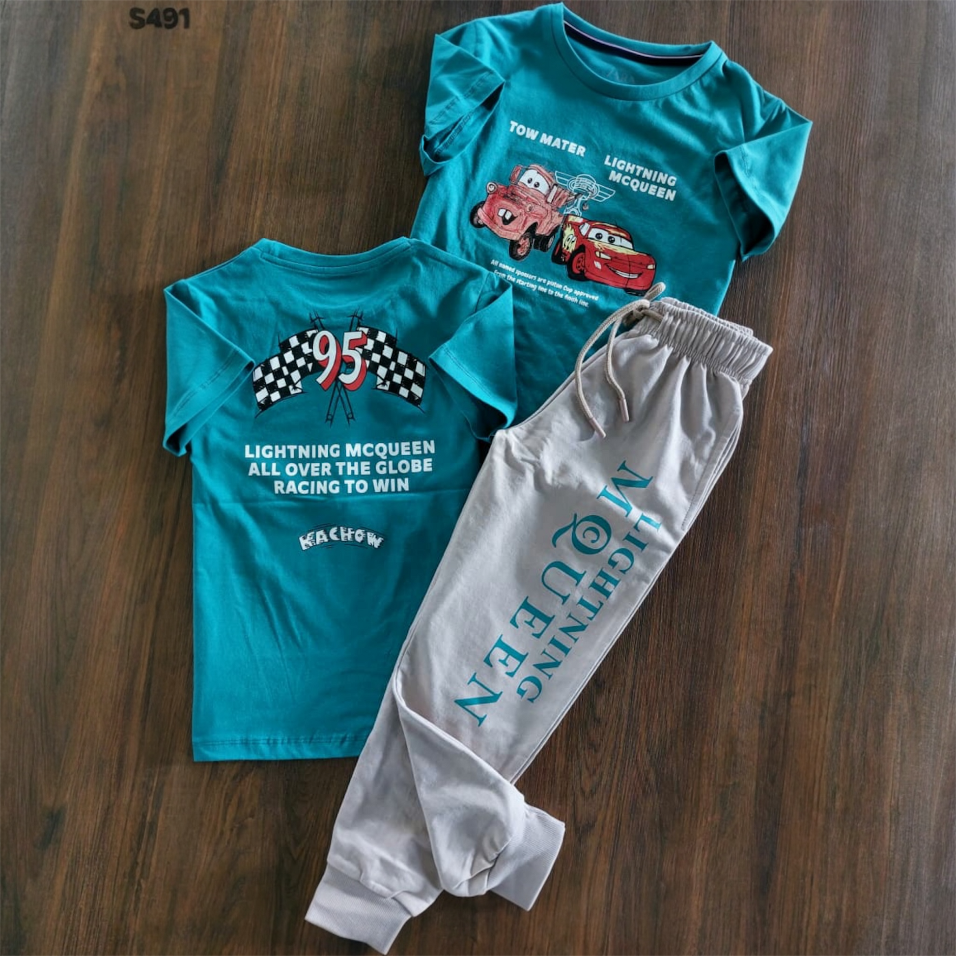 Boys' Premium Disney Pixar 'Racing to Win' Cotton Coord Set – Teal & Stone